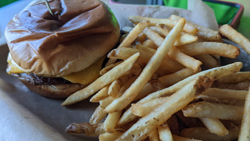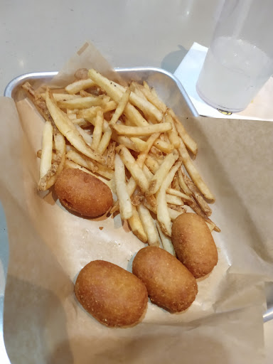 The service was amazing! Out server was very sweet, friendly, and helpful, and even though it was really busy she was very polite and paid attention to us and what she was doing. Food was pretty good. Amazing French fries, food brought out really quickly. Asked for no tomatoes but my food had tomatoes anyway.