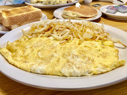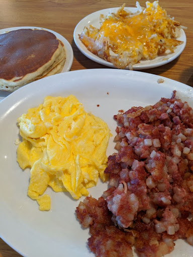 As regards my opinion of breakfast only, the food is fine....I mean "Eggs are eggs," right?? Nothing that is really yummy (like the "migas" IHOP used to make, but the food is very inexpensive. The staff is A-1 and has no control of my complaint as follows: Because the food is cheap and served in big portions, all the starving hoards in the city eat here. Which means that in addition to most of the smaller tables being filled, there are almost always 2 tables of 8 people yakking unbearably loudly. (I never could understand so many people think it is a good idea for a mob of people to insist on sitting together.) The acoustics in this restaurant are just terrible, and in addition to the top-of-their-lungs gabbers, the bussing stations are near the dining room so that there is always the slam/clank of dishes being put into the bins. I usually go with a dear friend, and there have been times when we just gobbled our food and left because we could hardly hear each other. I wish that the management would attach those padded panels to the walls to absorb sound as some other places do. It would make a world of difference.