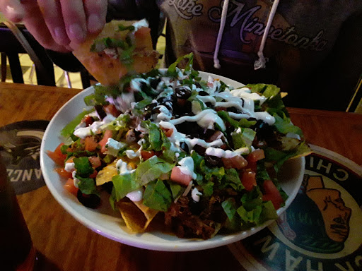 The atmosphere is nice the prices are pretty ok. The food was good and got to the table in a reasonable fashion. They had a wing special on Wednesday for .55. The bar tenders and servers seemed rather flustered though. It took quite a whIle to get a drink at the bar and even longer if you ordered it with food at your table. The outside seating was really nice though. A wide range of outdoor activities and what appeared to be a stage for live music.