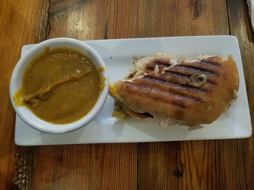 This place has a young, vibrant, feel with an edgy vibe. Great menu selection for several breakfast paninis...and they make it fast! They range from a plain sausage, egg maple, and gouda cheese to turkey bacon, sriracha aioli, and avacado. I also got some eggshell in a bite so at least its a real, fresh egg. They also have great lunch paninis. Ive had a grilled London Broil special of the week that was amazing! I will definitly visit again and try all of their great menu options. They all look and sound too delicious.