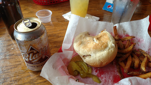 The staff was not prepared for all the track parents that came into town this past weekend. We stopped for sandwiches which were great. The fries were hot but tasted like old oil. The napkin holder was filthy along with the tops of the condiment containers. They were so full of old food it was black when you wiped it with the napkin. The bottles on the back bar were also filthy. I would think that if you are going to display your liquor the bottles should be clean. The "pepper infused liquor" looked interesting until I noticed the 1/2 inch layer of brown sludge at the bottom. I felt bad as there was only one bartender and one cook. Place would be great if the staff spent some "off time cleaning".