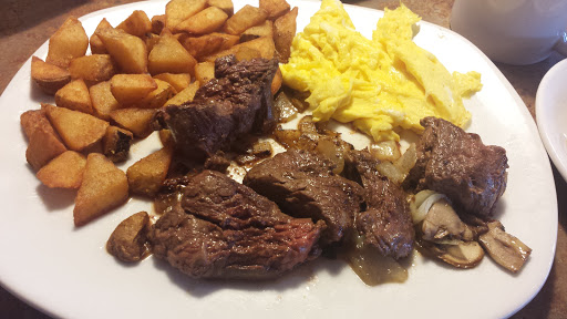 Went for brunch and had a great time, we requested a booth and were seated within minutes. Our server greeted us immediately and was very friendly, she told us about their specials going on and got our drink order. We looked over the giant menu and my girlfriend got a muffin, chocolate chip pancakes and hash browns. I went with the brioche French toast, sunny side up eggs, chicken sausage, and hash browns. Our ticket time was about ten minutes which wasnt bad at all since it was about 11:30am on a Saturday. The food was excellent and the eggs were cooked just as ordered. This is always a great spot to hit up when you are feeling hungry.