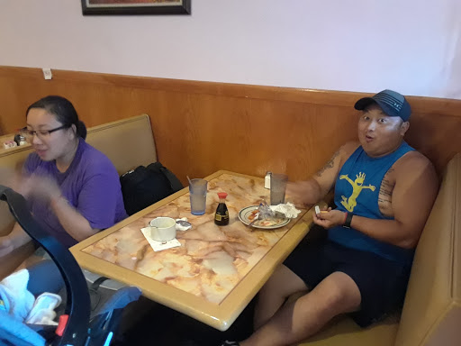 Always good food present and seems to be kept properly. Clean seating is always present, at least thus far. Sometimes a little slow on seating, depending on your hours of visit and how busy they are. Expect to spend around $11.00 per person with a beverage other than water. Overall rating for this small city area, 5 out of 5. Although, remember if you go there for Sushi you will probably be disappointed, especially if you are a fanatic about it. Personally, I do not eat sushi. So all the other spots in this restaurant are good!