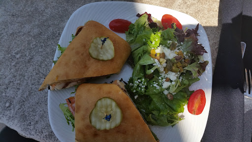 Crab cake appetizer! Mmmm! Peach summer salad with add on salmon was absolutely perfect! Flavor & freshness of every ingredient was very satisfying. Chicken jalapeño sandwich offered on fresh bakery. Great, all fresh, moist tender chicken! Staff was pleasant & knowledgeable. Restaurant & facilities are clean. River view dining across from beach. Overall rating reduced per two items; both layers of double table linens are fold crease wrinkled at all tables in dining room & wide window shutters are in need of dusting.