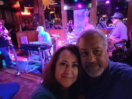 Very dark inside, I thought I had my arm around my wife, turned out to be a very insecure 325 lb biker with a mean temper. I offered to buy him a drink, he offered to push my tonsils to the back of my throat with his fist. I didnt take him up on the offer, but did tell the bartender my drink was on the biker before leaving....