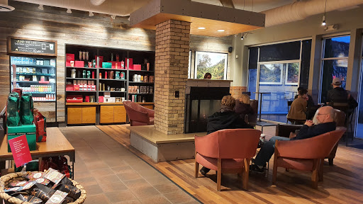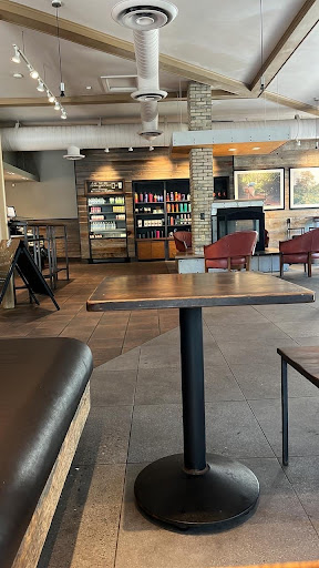Largest Starbucks Ive ever been in. Its beautiful and roomy. It has reclaimed barn wood. It doesnt feel stuffy or crowded. The staff is really friendly!