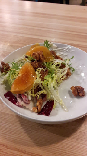 House made focaccia bread is superb, and the sandwiches with which it is made underscore this. The best tuna sandwhich I have ever eaten (Ive eaten a lot tuna sandwhiches). The hashbrowns are unique and deliciously crispy but the sandwhich was a really tough act to follow. An essential Madison eatery and it hasnt been around more than 3 months. Updated 7/28: I learned recently that the tuna sandwich was replaced with a "vegetalian" number, and though I was skeptical initially (I really wanted tonno), the vegetalian was delicious. I finally had a chance also to stop by for the Friday Night Dinner series and it was one of the best meals Ive had in the city. Excellently composed and executed. Corn agnolotti was transcendent.
