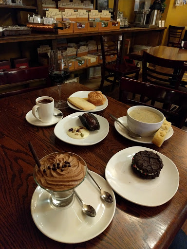 One of my favorite coffee shops around. Decent tea options, a limited food menu with enough variety, and delicious chocolate products, pastries, and other treats! The chocolate mousse is my favorite. Plenty of seating, good place to meet people if youre looking to have a semi-private conversation (unlike really small coffee shops). Great place to work from.