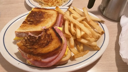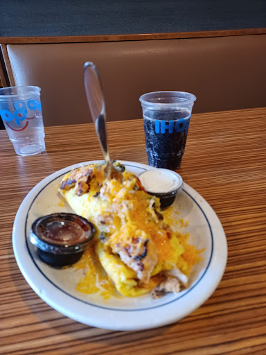 What a horrible, horrible experience. 3 friends and I went to eat at IHOP on a Saturday night. Our waiter, Patrick, wouldnt make eye contact with us, didnt seem to know the menu very well and was shaky like crazy - we assumed he was on drugs, to be quite honest. I ordered the BLT with french fries, Friend A ordered Strawberry French Toast Combo, Friend B ordered a full Pot Roast Melt sandwich with the potato soup and 1 pancake, and Friend C ordered a spinach, bacon and hash brown omelet with a cup of fruit. Friend C specified that she didnt want any tomatoes, and when Friend B asked for one pancake the waiter told him that they only serve pancakes in pairs - to which Friend B said that that would be okay, hell have 2 pancakes then. As the waiter brought our food out his swipe card hanging on his wrist was dangling on my food as he handed my friends their food and his thumb was halfway onto our plates as he handed them to us - very unprofessional and disgusting. We come to find out that my food and Friend Bs food were both already half cold, Friend Cs omelet had tomatoes in it even though she requested that it didnt, Friend B only had half a sandwich when he ordered a full sandwich AND his pancakes were no where to be found. The next time the waiter came around we asked about the pancakes that were missing and he seemed very confused (even though Friend B had a discussion with the waiter about how pancakes are only served in pairs), the waiter said that it would be just a couple minutes until those came up. We never saw the pancakes. We finished our food and headed to the register to pay where the girl who greeted us asked us who our server was and then yelled over to our waiter to come ring us up - even though she could have easily helped us pay for our bills. Maybe its a policy that our waiter must ring us up, but our waiter was obviously busy and she obviously wasnt. Our waiter was putting food onto trays at the time - to take out to another table, which we were perfectly fine with - but he was taking his fine and dandy time and made us wait for about 5 minutes before he wandered over to help us pay our bills. We were ready to walk out. Overall it was a horrible first experience for me at IHOP and Im really disappointed.