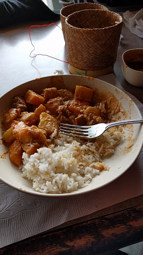 I had the chicken satay appetizer and the squash curry entree. Everything was absolutely delicious. The satay was 4 skewers of tender and flavorful grilled chicken. The sauce was peanutty, without tasting like peanut butter, and was a touch sweet, a little spicy and full of flavor. It also came with freshly chopped cucumber, which was unexpected and a good compliment to the chicken. This all by itself would make for a good light lunch or is plenty for 2 - 4 people to share. The curry portion was huge. One entree could easily be split by two people, especially when you share an appetizer. I like that they have an easy way to address how spicy you want things: timid, careful, adventurous and native lao. I went with the "careful" level of spiciness. The level of heat did not overwhelm the complex flavors for me, but next time Ill go for "timid" since it did start to get intense toward the end. The leftovers re-heated well, but I think it was spicier than the meal was initially. Something to keep in mind if youre sensitive to spice and expect to bring some home for later. Our server was friendly and chatty. We werent familiar with the type of noodles that came with a dish, so she brought out both rice and noodles. And at the end, she offered us more rice and noodles to take with our leftovers.