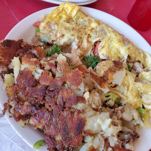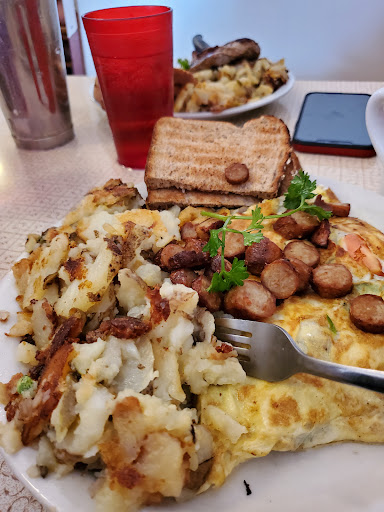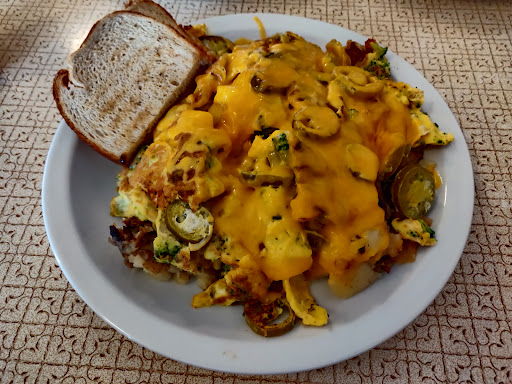 So. Much. Food.!! I ordered the chili cheese omelet and my friend the scrambler -- we couldnt eat it all which made for a nice lunch later on. Food was tasty and the price is right, especially considering how much food you get. Our service was decent, a little slow and she only came around once to refill my coffee which is slightly disappointing if youre used to the typical "bottomless coffee" service. To her defense, though, it was packed while we were there. Overall, great experience and will definitely return!
