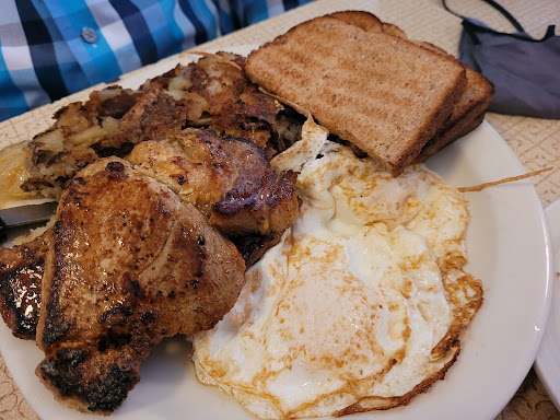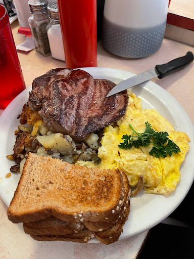 Great Breakfast Food! The servings are huge! If you come for breakfast, dont even consider lunch since you will be so full. I tend to prefer their pancakes. My favorite are the Strawberry since they are VERY FLUFFY. The griddle cakes and banana pancakes tend to be heavy and thick. Cinnamon rolls and coffee cake are very good as well. I enjoy the steak and eggs as well. Just get here early, it fills up quick.
