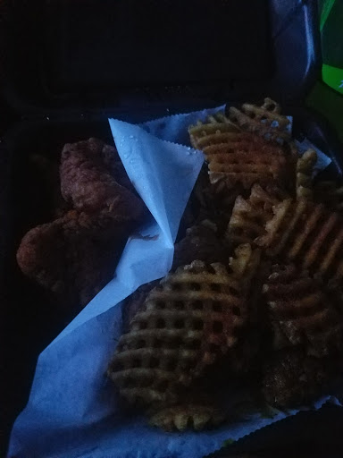 Slimy wings like they werent fried the first time I came in to order with a friend. I requested for them to be crispy too. I decided to give them another chance and this time i ordered online and i placed a call for them to fix the order because i missed something and the chef said no. Very short and rude with me they arent good with customer service. If there is no resolve behind these incidents i would say dont spend your money at an establishment that isnt big on treating customers well. upon delivery missing waffle fries called and they sent out the ones they forgot to send they wasnt fresh or hot and i dont live far from the location Update: Manager compensated for the poor food and service. upon returning i received better food and service. I will never order delivery again that trust is broken for me. I love the dry rub its great !