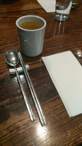 Went in for a take-out lunch today. First observation is that their menus are very clearly labeled for vegetarian/vegan options, and clearly summarizes the dish for someone who isnt versed on Korean cuisine. I am one such person, my experience with Korean food has been a bowl of "instant" bibimbap and mini fish cakes from a Korean grocery store. So when I was asked if I needed any help, I decided to ask what a good dish for someone like me (lacking experience) would be. I was directed, very helpfully, to the beef bulgogi, and ordered that. The wait was about 15 mins, and while I was waiting, I was offered a sample of their roasted barley tea. It is an unsweetened tea with almost a nutty flavor, reminiscent of sesame, that I very much enjoyed. I sat for a few minutes nursing my hot tea, and eventually my food came. I was instructed (by whom I believe was the owner) on how to carry the bag so as not to spill anything, and was given a description of the side dishes that came with my meal. Took the food home and it was still piping hot when I pulled it out of the bag. Now the important part: the food. The beef bulgogi is delicious, thinly cut tender beef and sautéed veggies. No real "sauce" other than what it was cooked in, so the flavor come straight from the beef and veggies. I also got a side of soup, which I was told rotates flavors daily. Mine was a soybean paste and potato soup with green onions. There are a lot of underlying flavors in there, and alet hough I dont like spicy food overly much, I think the soup could benefit from a dash of spiciness. I also got a side of cucumber kimchi, which I discovered I dont like as much as cabbage kimchi, but you cant win them all. All in all I was pleasantly surprised to find a friendly, helpful atmosphere and delicious food (I had been told by a friend there were no good Korean restaurants in Madison, she was obviously wrong) and look forward to coming back again to try more dishes!