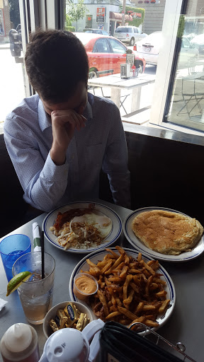 I would say the best thing about this place is probably the drinks! Unique and quality drink concoctions. I got a Leghorn samich and the best thing I can say about it was that the chicken wasnt dry other than that it was bland at best. Plus the bread wasnt toasted like it said it would be. The frys were pretty good, not greasy and the course salt made them tasty. We also ordered eggs hashbrowns and a slice of meatloaf. The only tasty thing on the plate was the gravy. Other than that it tasted like bland eggs,hash and meatloaf would, Idk I wasnt that impressed with the food. Also, got a pistachio muffin that again, was bland at best! Also, after waiting 15 minutes outside to be seated, it irked me that the guy who seated us told me that it would take another 20 minutes to be seated at a booth, but the counter had immediate seating, so, we sat at the squished counter and 5 minutes later 3 booths opened up! They definitely lived up to their standard of moms cooking, but I dont know if I want to go out to eat and pay for home cooked food. I would expect it to be a little better plus mom wouldnt make me wait 45 minutes to eat either and charge $40 w/out tip. AVERAGE ENTREE IS ABOVE $5 I would rather eat at Franks Diner in Kenosha even though there is a wait to eat their as well, the food is good and the service is super fun and funny! They go out of their way at Franks Diner to have fun with you, its a schtick they put on!