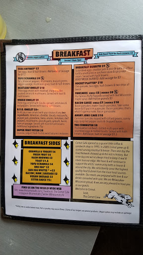 Where else but Milwaukees Fashionable East Side would you find a place justifiably feature on Diners, Drive-ins, and Dives? What Comet lacks in restaurant space they make up for in flavor, technique, and bacon. Space is indeed an issue here, and Comets main detractor, though it can hardly be faulted for it. The place was a little more than a bar with a few tables. Now that its been on TV, the place is completely insufficient for the traffic that is coming through the restaurant. Milwaukee is often overshadowed by the accomplishments of Chicago; when the Brew City is singled out, people are quick to support it. My visit began with writing my name on the wait list and standing in the cramped walkway of the restaurant with several other parties for about an hour. Once a seat became available, my party and I were quick to submit our order. Not that there was much question as to what to eat - the meatloaf and compact turkey dinner were two of the meals ordered. The former was the best meatloaf I have ever eaten, not only because there is a distinct lack of gourmet meatloaf out there, but the damn thing takes three days to make. Served with the beer gravy and mashed potatoes, it was welcoming and homey and fulfilling. The turkey dinner was good and a unique approach, though I question if four turkey balls would have been a more hearty meal, especially given the size of some of the other dishes. As if the restaurant wasnt enough, the alcohol menu is something to behold, featuring crazy cocktails, a large selection of wines, and some of the best microbrews from the area, notably Three Floyds. Its one of the only places in Wisconsin to get the brand, actually. Milwaukee is not well known for its gourmet food, but places like Comet show that we have our diamonds in the rough. I would recommend that everyone who is looking to visit take a look at the website first to make sure that the item you want to eat is being served (they serve brunch well into the afternoon on the weekends) and to go during off-peak times.