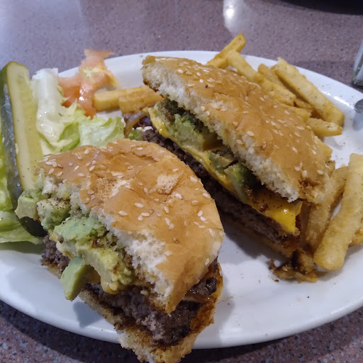 My husband and I go here very often. The portions are large (I always have leftovers to take home!) and the prices are good. They have such a variety of food, everyone can find something they like. Breakfast is even served all day. And it all tastes like a good home-cooked meal. The service is great, too. To the reviewer about the slot machines, I didnt even notice there were slot machines until my fifth time going there. You can asked to be seated where you dont see them. I like the seats near the fish. :)
