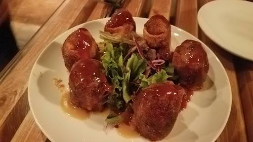 Youd think a "hostess" would be better able to estimate wait times. We arrived and were told wed have a 30 minute wait. After 45 minutes of standing huddled in a corner with my already hungry family, 6-year-old included, I went to see how much longer the wait would be. She tells us "maybe another 10 minutes" as I look around and see at least 2 tables of people, plates taken and drinks empty, obviously waiting for their bill to arrive. It seems to me most of their emphasis goes toward supplying drinks to the bar sitters. This is very unfortunate, as we went well out of our way to try this place, and the smell of food we couldnt even eat added to our impatience. After finishing our drinks from the bar, which earned the second star, and waiting 10 minutes past our "10 minutes more" wait, we paid the bar tab and left. 15 minutes later, as we were seated at a second restaurant, two text messages and a subsequent phone call come in. Thanks, of course, Id LOVE to be seated, at or at least NEAR the time of the initial estimate. Thanks for wrecking what, up to this point, had been a fun day.