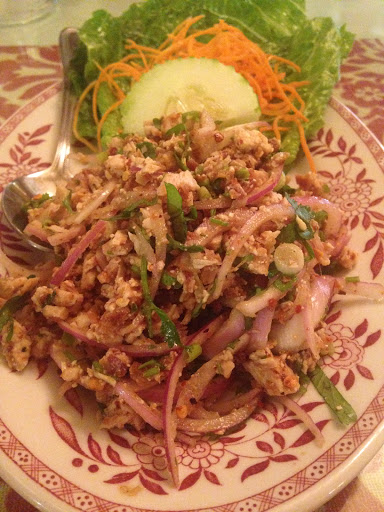 First things first...eighteen they say hot they mean HOT!!!!! My co- who is from southeast asia that now lives in Albany was in desperate need for some Asian food. She asked for her food to be "native hot". I asked for my food to be "adventurous hot". The food was unbearable but de-li-cious. The service was fantastic and we didnt have a wait. We both settled for water because i personally didnt want to be up all night from my favorite and usually order thai tea. The bill was $13.00 per person. We both had an appetizer and an entree. I had some jumping shrimp (lemon, chile, cilantro, and beautifully sliced carrots) and pud see eau (their spelling not mine. My co worker had spring rolls and drunk noodles.