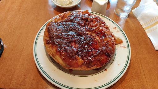 Went in and the staff truly did not care that we were there. They werent even that busy, but still barely interacted with us. I ordered the "Apple Pancake" and I have no idea how this is considered a "signature dish" because it was literally the most disgusting thing Ive ever ordered from a restaurant. First, the dish was WAY TOO HOT. I tried to take a bite of it and I had to immediately swallow the food because it was burning the inside of my mouth. I waited 5 minutes to eat it, and still it was way too hot. After 10 minutes I was able to start eating a little bit, but the description on the menu said it was a pancake, but when I ate the "pancake" part it tasted like I was eating an omelet. It was so eggy, and had the texture of an omelet, that I was grossed out. The bottom part of the dish was so hard that I couldnt actually get my fork through to cut it. The only edible part of the dish was the cinnamon apples on top, and even then they were nothing special. After 3 bites I decided that it was so gross that I couldnt even eat it, and so my sister offered some of her meal to me. I was eating that with my Apple Pancake on the edge of the table, clearly having no plans of eating anymore. The waitress walked by a few times and I saw her look at us and notice that I was eating off of my sisters plate and that my food was on the other end of the table barely touched, but she never asked about it. She never came back to actually ask if the food was ok because I would have told her I wanted a refund on whatever experiment they tired to feed me, but instead she very quickly walked over and placed the check on the table, knowing I was going to complain, and just walked away too fast before I could say anything, and I didnt see her again after that. I will never come to this place again. Gross food, terrible service.