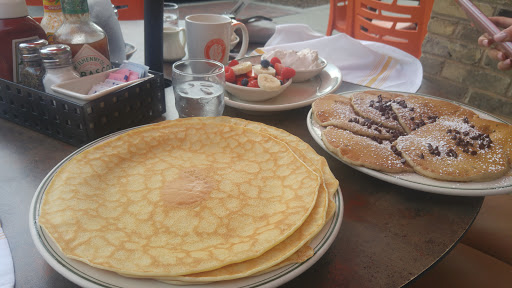 Went on a busy Sunday morning, luckily got there early and was seated in under five minutes. The service was very friendly, polite, and quick. The pancakes themselves were, well, pancakes. There wasnt anything particularly great about them, and I feel the price was unjustified. Also, the coffee there was pretty gross. A+ staff and service though.