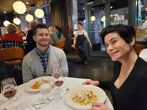 A very memorable dinner with my sisters! We started with the mussels for an appetizer, which were amazing, and a bottle of Chianti. Our server was very very good, going as far as suggesting a few different plates to share. This worked for us, as we all wanted a bit of the same things. We shared the evenings special pasta choice, which was scallops with sundried tomatoes, peas and a wonderful homemade pasta in a beautiful light sauce. The scallops were cooked to perfection and the pasta was probably the best Ive had. We then shared the NY strip and Halibut entrees. Both were absolutely wonderful, the chef even went as far as cooking a portion of the steak a bit more for one sister who does not like her meat rare. The halibut was the standout by far, crispy with the pistachios, and the tart cherries... wow! I cant wait to get downtown again, I need more of this!!! Thank you all for a wonderful night that we will not soon forget, we were treated so well!