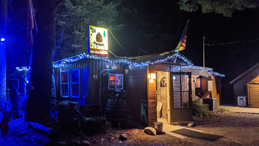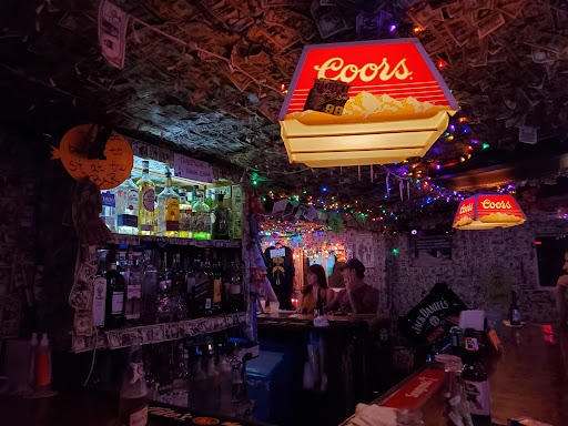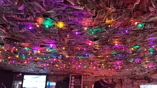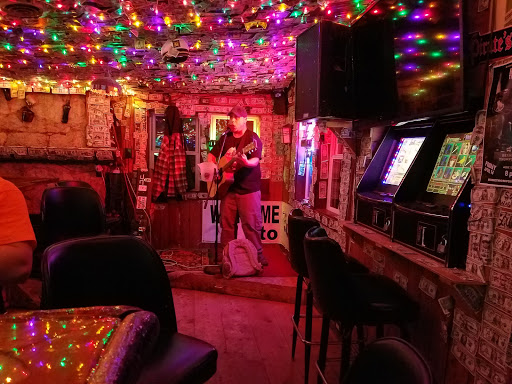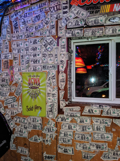 Tiny bar plastered in dollar bills hiding in the trees outside of town. Almost always has live music and the drinks are pretty cheap. Love this place.
