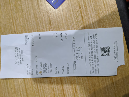For the last 5 times Ive ordered pick up my order had an issue . Last time I was told 20-25 min. for it to be ready and it took 45 min. I found out they had made it all bonelss instead of traditional and had to start from scratch. What irratated me the most is I was informed by a waitress ( not a manager , who by the way looked lost at the time ) and given a $5 off coupon with my food and on her way she went. Looked in my order and they had not put in the blue cheese. Word to the wise . Dont pay till your food is in hand and double check it every time .