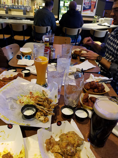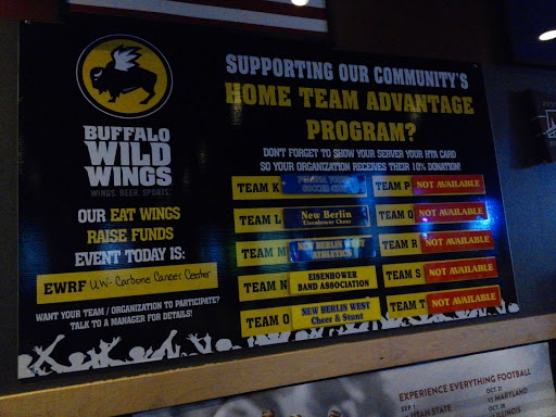 Like any buffalo wild wings, the food is usually very good. However, everytime I go here with my friends, the service is unbelievebly slow. It takes 5-10 minutes for a server to come to your table when the place is basically empty and then over 20 minutes when the place is packed. Also, the servers have some weird personalites. Goth/Emo girls are unpleasing to look at, fat guys are also questionable, and the intelligence of the servers is also sketchy. There is only one good waiter, and he only has one arm! Id give this Buffalo wild wings a C- and perfer the one in West Allis much better. Or else Hooters who actually have attractive servers.