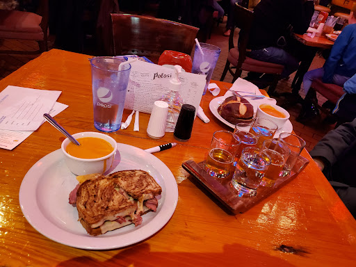 I completely agree with one of the other reviewers, the atmosphere is great: Jeans and a sweatshirt or a suit, either way you wont feel out of place. The beer is fantastic, some of the finest microbrews youll find on either side of the Mississippi. Snake Hollow IPA is pleasantly Hopped without the notable tannins that come from overheating during the hopping process. The Cave Ale was served at a perfect tempurature, and while it didnt hold its head for very long, it did possess a smooth maltiness and a clean finish that allows your palate to savor the food. Sure a $9 burger should be good, but this was more than good. The burger was cooked perfectly to my request of Medium. Clear juices flowed out after that first bite and the cross section of the patty revealed a light pink center. The outside of my "Good ol Potosi was not seared and crusty as so often happens, it was merely cooked to that perfect grey-brown of ground beef. Atop the burger rested 2 pieces of perfectly crisped bacon, an appropriately sized pile of sauteed mushrooms lending their buttery smooth texture, and a modestly sliced piece of Wisconsin Cheddar cheese fusing with the supple burger and the toppings. No Butter, Mustard, or Ketchup graced the warm, soft Pretzel roll that formed the foundation of this sandwich. One would expect this sandwich to be dry, it was definately not dry, but not so wet to be messy. Our Waitress, Tammy was wonderful; attentive, and charming without being pushy or entitled. She served us quickly efficiently, and didnt ask if everything was "ok" while we had mouths full of food. Not only was this a worthwhile trip, but it must be had again, as I did not have a chance to tour the museum or Brewery.