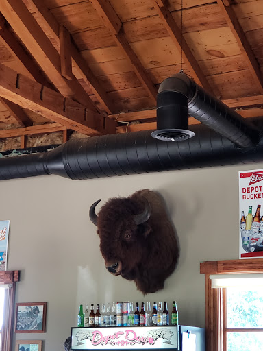 Great food, fun location, reasonably priced, cheery staff. The depot provides a rustic glimpse of the past. The menu consists of burgers, chicken strips, cheese balls, sandwiches like BLT...