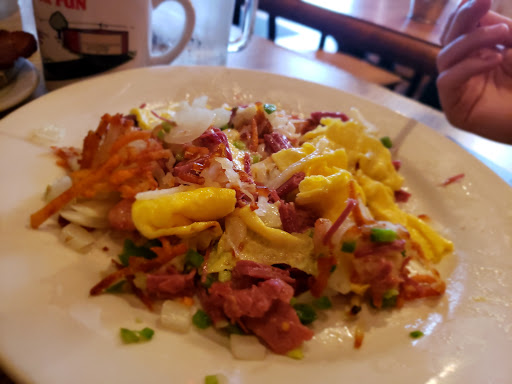 Good food but inconsistent . I order the Red Flannel Hash every time. And every time it comes a little different (1 egg vs 2 eggs, portion size variances, with or without peppers - not a root veggie, etc). Also, sandwiches do not come with ANYTHING. So expect to add another few $s for fries or even chips.