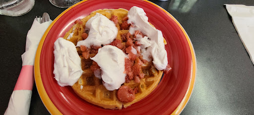 Delicious breakfast food at a fair price in a 50s style diner. I ordered the "Walleye n Eggs" which came with two deliciously fried walleye fillets! Four stars because the potato pancakes, though large enough to encircle a dinner plate, was paper thin and crispy with no soft center, which was disappointing, but other than that I thoroughly enjoyed the meal.