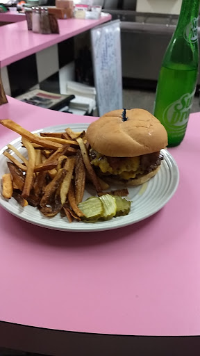 Angie runs the place and makes great food. Say hello to her. Make sure to try a homemade doughnut. Pink 50s decor diner... some is probably original. Will go back time and again because of the great service and food.
