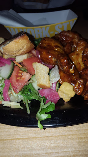 I love their boneless wings but thats about all there is to love off their menu. Very overpriced, so best to go on Boneless Thursday. I tried their buffalo Mac and cheese last time I was here and if I wasnt so adamant about food waste I would have sent it back to the kitchen. I paid $10 for a toddlers size portion of Mac and cheese that was so dry I think they forgot to add the cheese.. It also came with toasted bread on the side that was so over spiced with garlic salt I refused to eat it. Honestly worst Mac and cheese Ive ever had in my life and it irritates me so bad that I paid as much as I did, especially considering I was still very hungry afterwards and had to grab something else at a drive through before I got home.. Something I thought Id never have to do in my life.. So best bet is to stick to the wings! If you had any interest in getting the buffalo chicken Mac and cheese, let me save you the trouble (and money).. Get a packet of easy Mac and cut up a couple leftover boneless wings and throw it on top of the easy Mac.. Youll get about the same portion but itll taste a hundred times better. Youre welcome :)