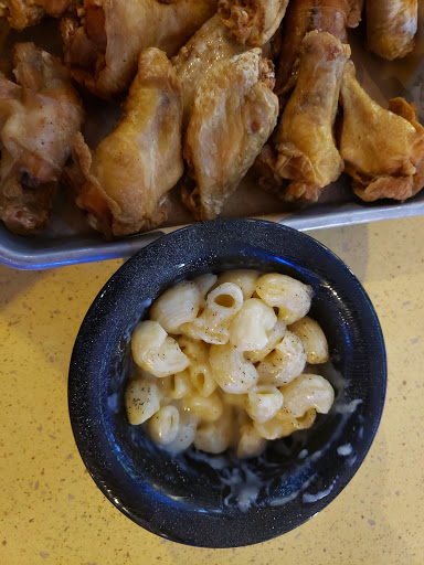 The wait was 45 mins to get our meal, mac and cheese was dry and our wings barely had sauce.. Very disappointed..