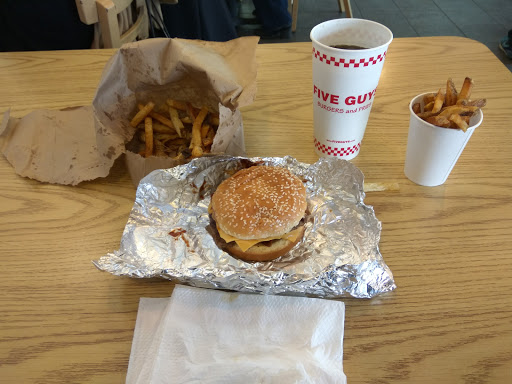 Simply put: I love Five Guys! Their hand cut fries are always perfectly done, and the burgers are delicious. A very good example of only having a few things on the menu, but doing them well. Heres a tip: They always give you a TON of fries, so grab a couple of extra cardboard "boats" from the peanuts to hold the extra fries!