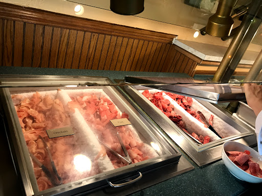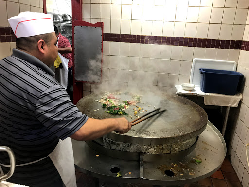 Ate here with a group two weeks in a row. Dudes on the grill have a hot job but keep up with the crowd. I enjoy sampling and the bottomless buffet allows me to make a couple trips with smaller bowls of ingredients trying different sauces. Pre-made steam table item selection is not extensive but good and they bring out just enough freshly prepared amounts at a time to keep it stocked. Waitstaff is fast to fill waters and clear dishes. Kikkoman soy sauce at the table. And despite no separate checks for the table, they take individual payments of cash or plastic at the register. A couple noisy kids but thats life. Reasonably priced and fun to watch the chefs at work. Bring an extra buck for their tip cup.
