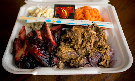 First timer and will not be the last time. Greeted in a very friendly manner and got food quickly. Got a combo platter (pork and chicken) and the crack tea. As good as the marinated was, I would go back for the carrot/pineapple slaw all by itself. Recommend checking this place out...carryout is recommended as there are only two small tables to dine in.