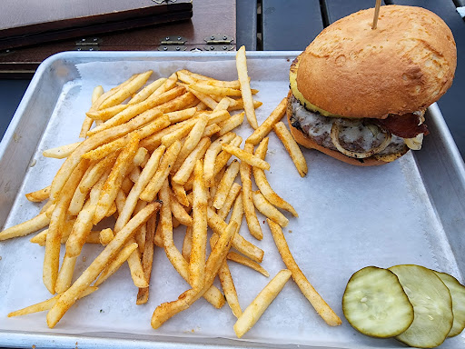 Outdoor seating, great service and overall wonderful experience. The black bean burger and side salad with citrus vinaigrette was delicious.