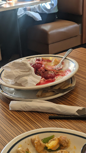 Disinterested waiter told us they were out of Sierra Mist, lemonade and apple juice. No choices for our son to avoid caffeine. Placed our order. Waiter came back a few minutes later saying that they were out of raspberries for the signature white chocolate raspberry pancakes. Switch to New York Cheesecake pancakes. Waiter came back a few minutes later saying they are out of cheesecake. So we left and ate elsewhere.