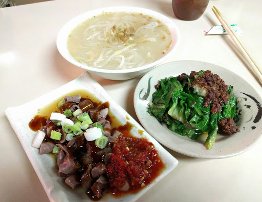 Nice food. Nice service. We got pork chop rice, minced meat with rice, Taiwanese sausage, pork liver soup, green bean soup dessert.
