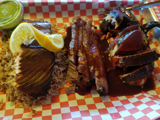 The food was delicious until my tongue went numb. We ordered mild, but if that was mild Lord have mercy on the poor soul that orders hot. The ribs, chicken, and SC pulled pork were slathered in sauce and good but my favorite, if for only a second, was the baked beans. They were sweeter than molasses and subtly flavored with peppers from the third ring of hell. My own breath burned my lips as we were leaving. All in all a great place, but not for the faint of heart.