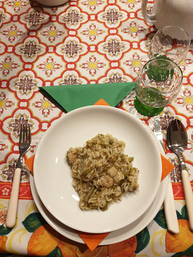 I ate family style with a group of friends, at this restaurant, many years ago. I have been making the asparagus wrapped in prosciutto, finished with balsamic vinegar and shaved Padana cheese ever since. After seven years of failed attempts to dine here again, I finally made it back. I forgot the asparagus was wood smoked. It was excellent. The grilled eggplant with tomato sauce: the eggplant was nicely breaded, I was slightly disappointed that the tomato sauce did not have more seasoning to it. Still, it was something Id order again. The bread they serve with herbed oil was excellent. The almond pear torte was good, to very good. But... the Risotto with Scampi was perfection. The service was outstanding (we went at 6:30 on a Tuesday). Every recommendation our server made, including the wine choice was excellent.