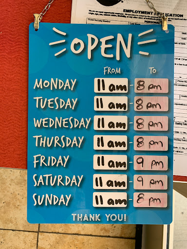 | Working: | 11AM–9PM 11AM–9PM 11AM–9PM 11AM–9PM 11AM–9:30PM 11AM–9:30PM 11AM–9PM |