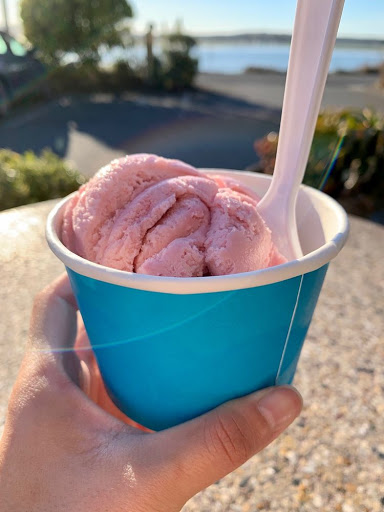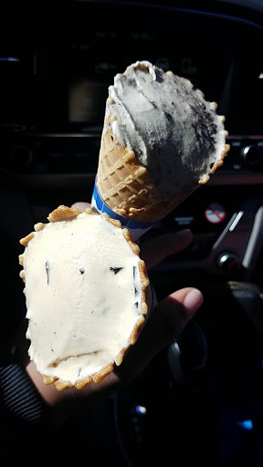 Generous serving of tasty ice cream after a long day at the beach. Small shop, big line.