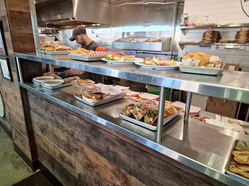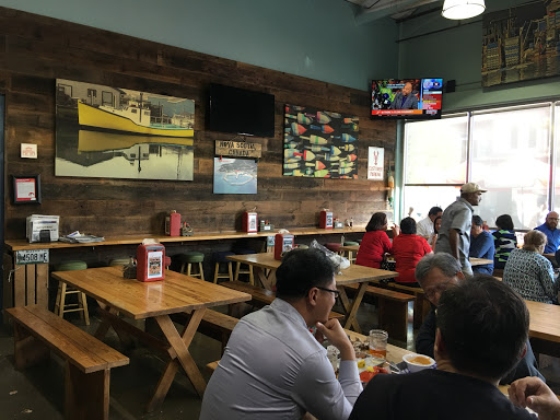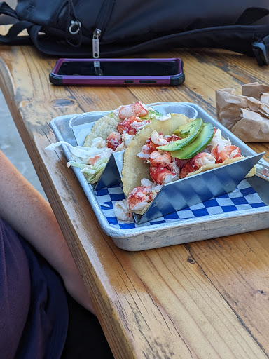 Why is lobster so expensive?! Ill never know but I had to treat myself, it was my last few hours in SF. This place is great, it has an atmosphere, character I should say, and thats rare at most restaurants. Yes, everythings pricey but everyone there seemed like they were having a good time and enjoying the food. Oh the food! Tasty, I bet its even healthy. I enjoyed my pound of lobster, with chips, a roll and a sweet, Berry-like coleslaw. Love that they use small Mason jars as cups for drinks - I tell you, character. Only downside I would say, is probably service. The guy at the register was all smiles but I didnt spot a single other one except for the customers. Oh and the tacos are extremely small. Anyway, drop by for a good time and some good seafood. They have a market area too!