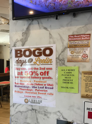 Leelins, nothing more than Leelins Trying to forget my Leelins of love. Baboy (Pig) Bonanza! Leelin Bakery & Cafe, formerly Goldilocks Bakeshop, with the same owners and a makeover (the kind you get when you break up with someone and youre looking to make them jealous with envy when they see you in the arms of someone else) . Leelins provides Filipino comfort foods for those unconcerned with such paltry things like high blood pressure & diabetes ;p Came in for dinner & made sure to take advantage of the 10% off with Yelp check-in. The restaurant space is now in an open layout compared to its former iteration. Tonights dinner choices (*Warning*-vegans look away)- Crispy dinuguan A hearty pork blood stew with crispy pork skin delightfully adorned on top. Ive never had "crispy" dinuguan and my imagination was running wild with what the dish would look like. But, I was pleasantly surpised with what I saw. The stew was rich, with choice cuts from all over the pig. I prefer the pieces of snout, being cartilaginous and uber fatty. The crunchy pork skin was the pleasurable highlight for me. Sizzlin sisig Piping hot from the kitchen, sisig is a popular Filipino dish of diced pork with red onions, chilis, bell peppers and other select ingredients, topped with an incredible, edible sunnyside up egg. Eggs, like bacon, make everything better! This selection was hot, spicy, fatty & fun! Ill always be partial for the sisig at Ellens Pinoy Grille. It may not be "authentic", but I love the delectable crunch. However, the sisig at Leelins is good and will be a crowd pleasure for all you lovers of pig. Leelin is also offering some innovative dishes, such as the longanisa burger- Longanisa is a Filipino sweet sausage. I took a pic of the display burger for now, but I plan to try it when I come back. Of course, the bread & butter (literally & figuratively) of Leelins Bakery & Cafe are the assortment of baked goods. Service was good. There were a lot of staff at the ready to service the needs of diners. Seating is ample with booths and tables for small & large parties. Parking is in a private lot shared by Island Pacific Supermarket and Hometown Buffet. I think, even w/o the vaunted Goldilocks name, Leelin Bakery & Cafe offers quality Filipino food that we grew up loving. I applaud Leelin for experimenting with new food creations such as the aforementioned longanisa burger. If youre looking for some bread, sweets and a hearty meal, then I highly recommend checking out Leelin Bakery & Cafe. NOMNOMNOMNOMNOMNOMNOMNOMNOMNOM
