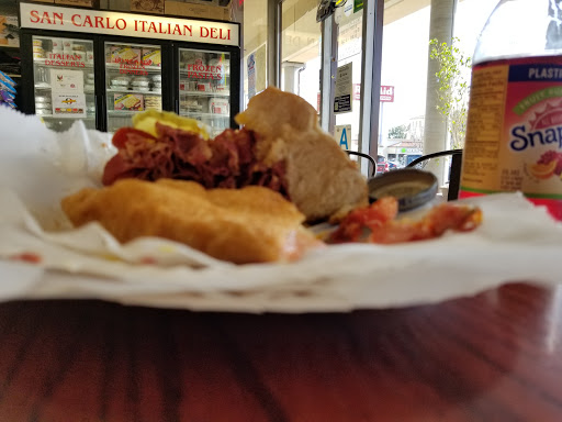I cannot say enough good things about San Carlos deli. From the family run business to the high quality standards of ingredients, to the wonderful people who treat you like family this place has it all. Two friends and I came and got a half meatball half sausage, San carlos special, and pastrami sandwich. All which Ive had and all which are awesome. Ingredients topped high upon fresh bread, you wont be disappointed. They gave us free bread cheese appetizers as well. Their spumoni ice cream is great as well. Deli, sandwiches, icecream, everything you would want.
