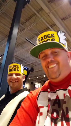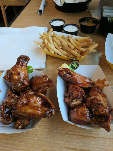 Wait time was decent at 10-15 minutes on a Monday night. Server was friendly and knowledgable with suggestions to us newcomers about sauce selection. He didnt bring us our food however. The server who did was clearly English-challenged and didnt seem to grasp that half our order order was missing (what did he think we would do with eight sample cups of sauce and nothing to dip it with?) and we had no silverware. When he finally brought the wings they were bone-in when we ordered boneless and no coleslaw for the pork sandwich. The manager who saw our consternation was more helpful and comped us the fries when the ones he brought were wrong. Once we had our correct order all of us felt the sauces were WAY too salty and that most of the food itself was just frozen out of the bag and then deep fried. Of the four of us who ate, three agreed we wont be back.